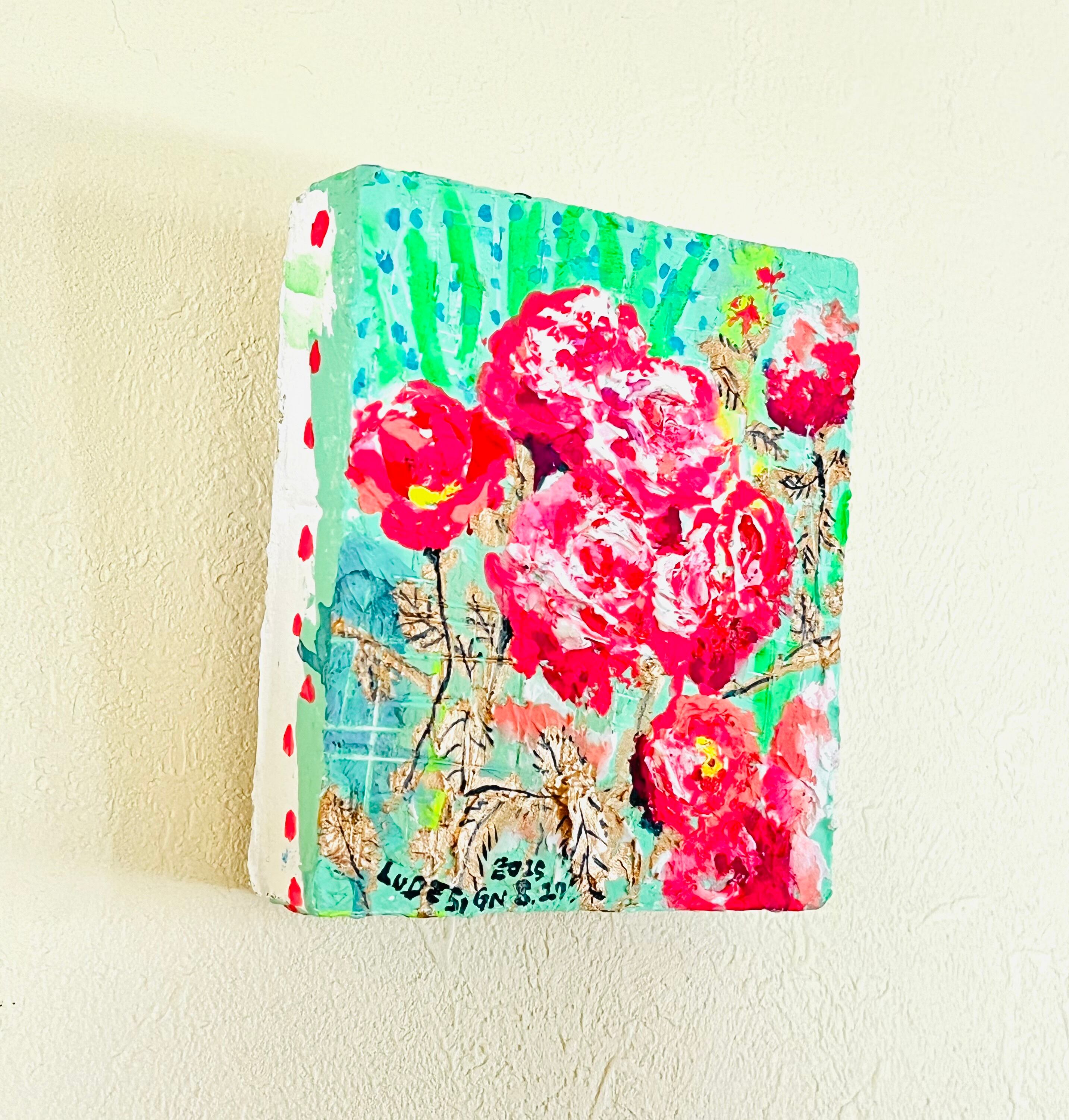 まめ絵画「小さな赤い薔薇」
